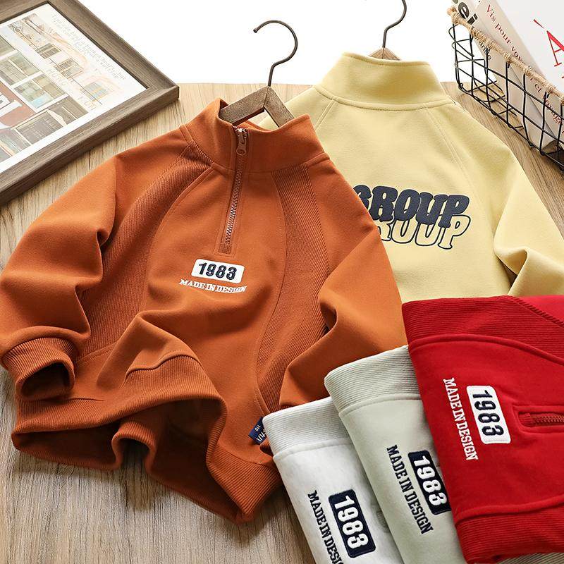 男童半拉链加绒卫衣秋冬2025新款 儿童立领洋气上衣中大童酷帅长袖
