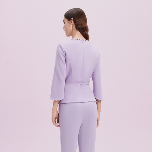 上衣 Lakoradior拉珂蒂淡紫春夏圆领珠饰蝙蝠袖 精致社交