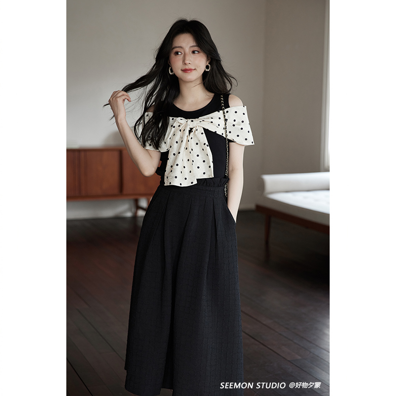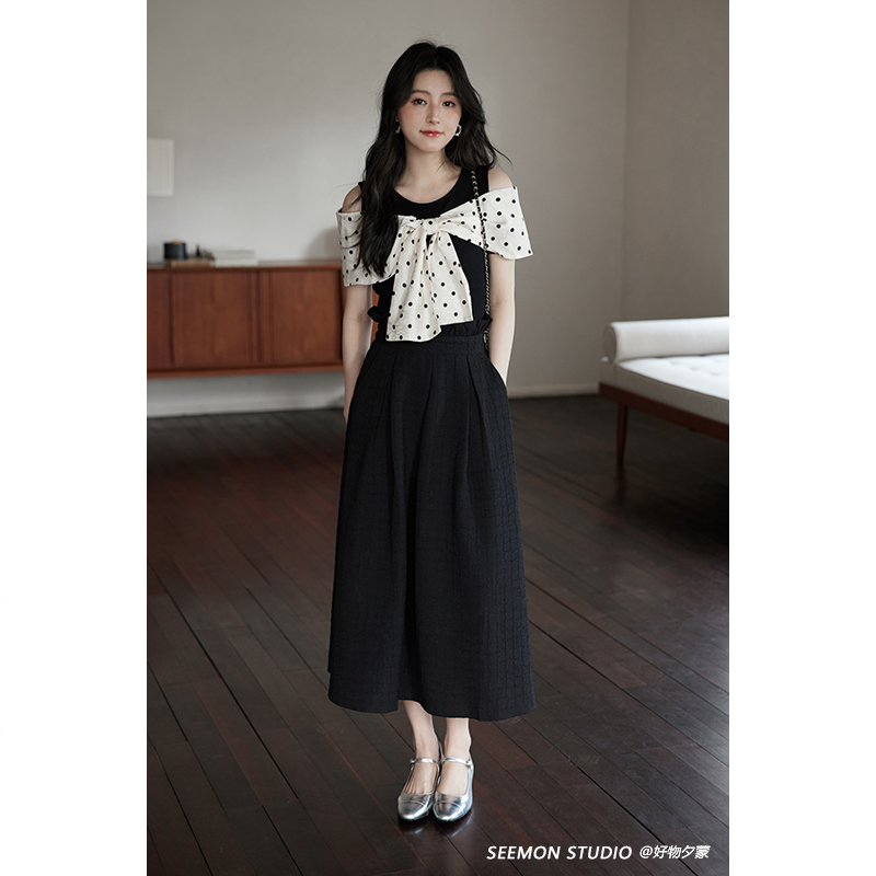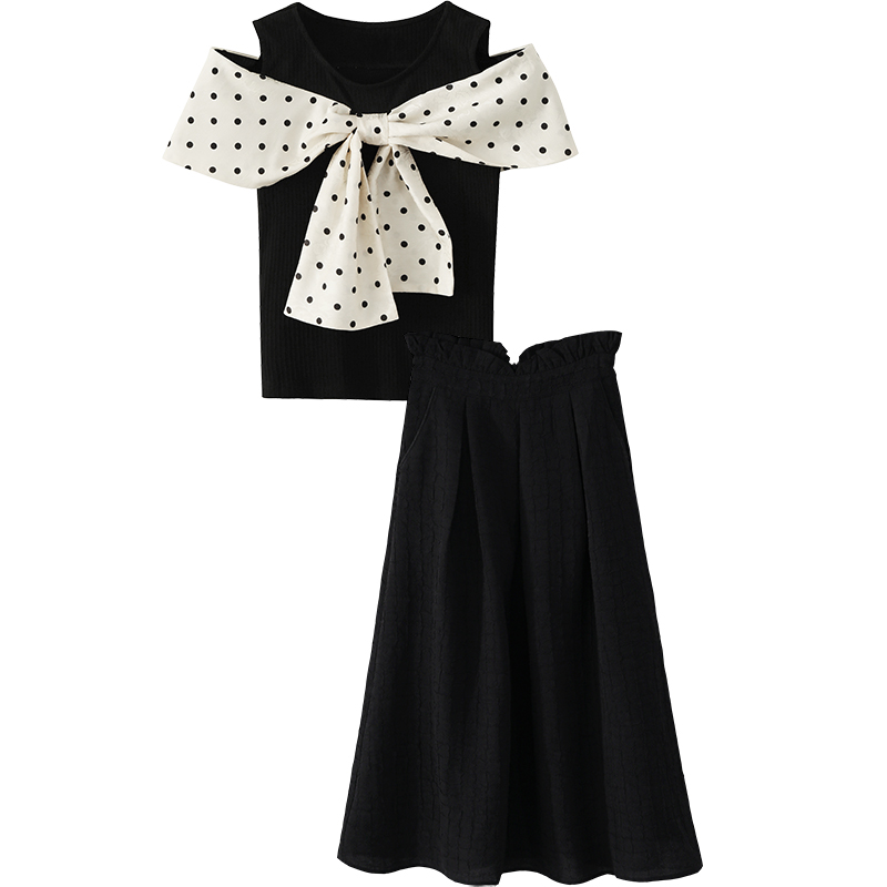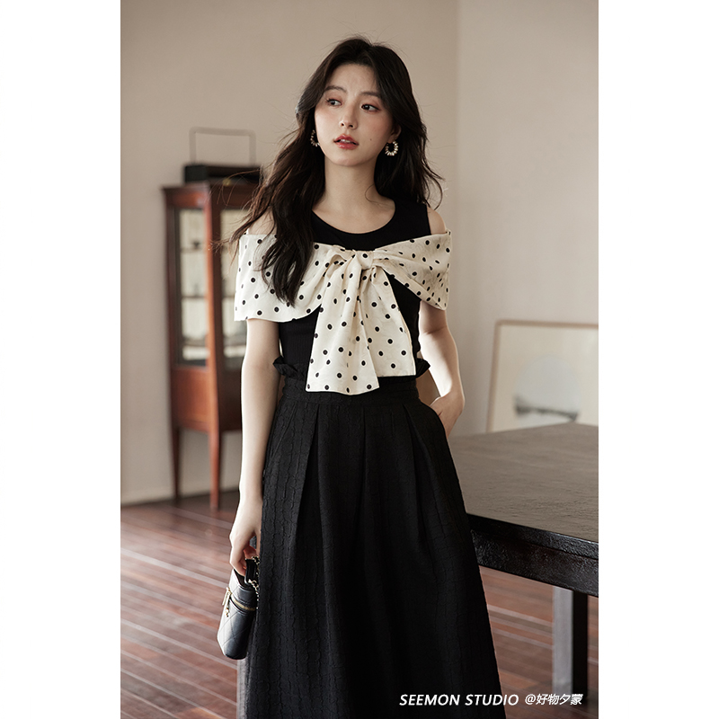 气质设计感小众蝴蝶结t恤上衣半身裙套装 短袖 夏季 女 清仓秒杀