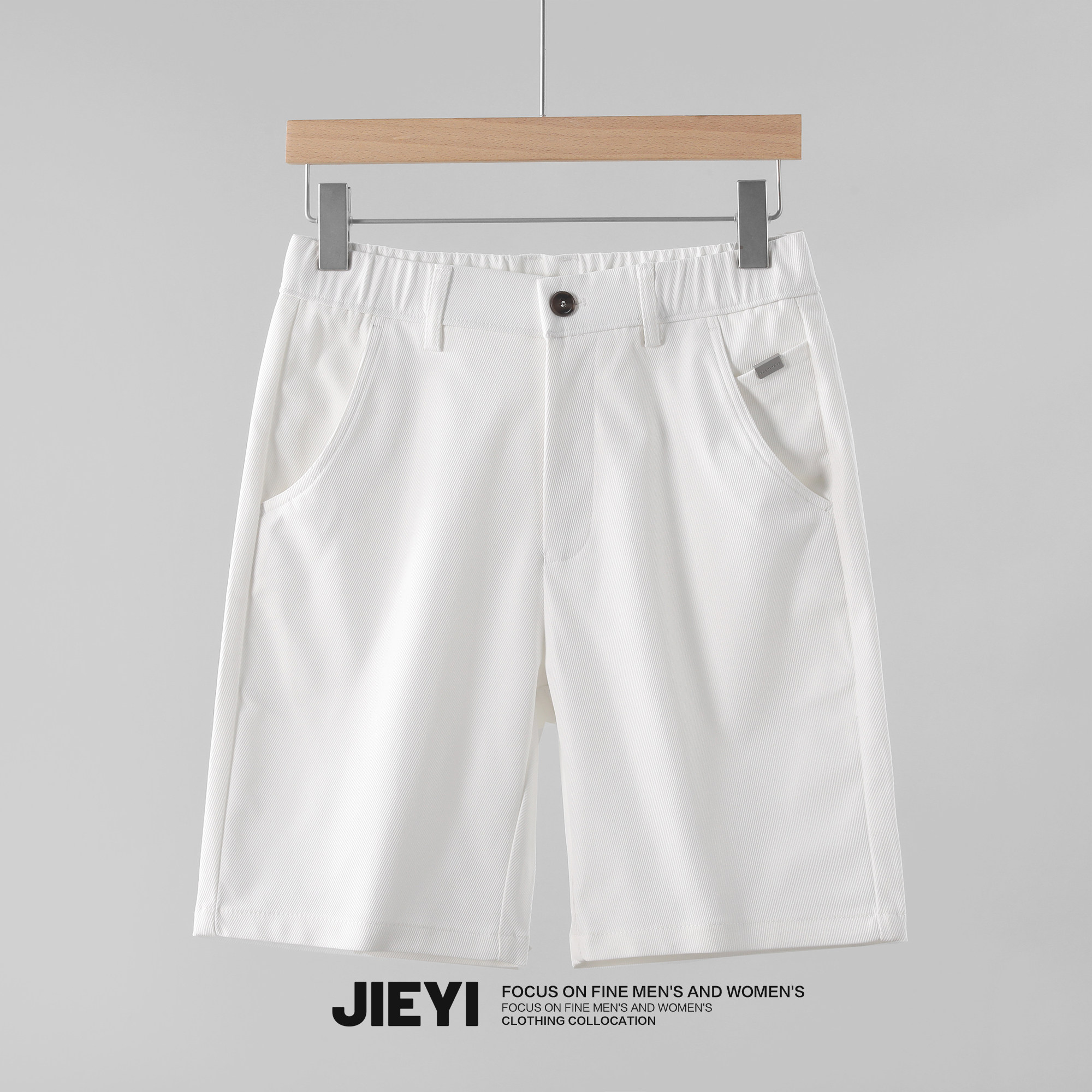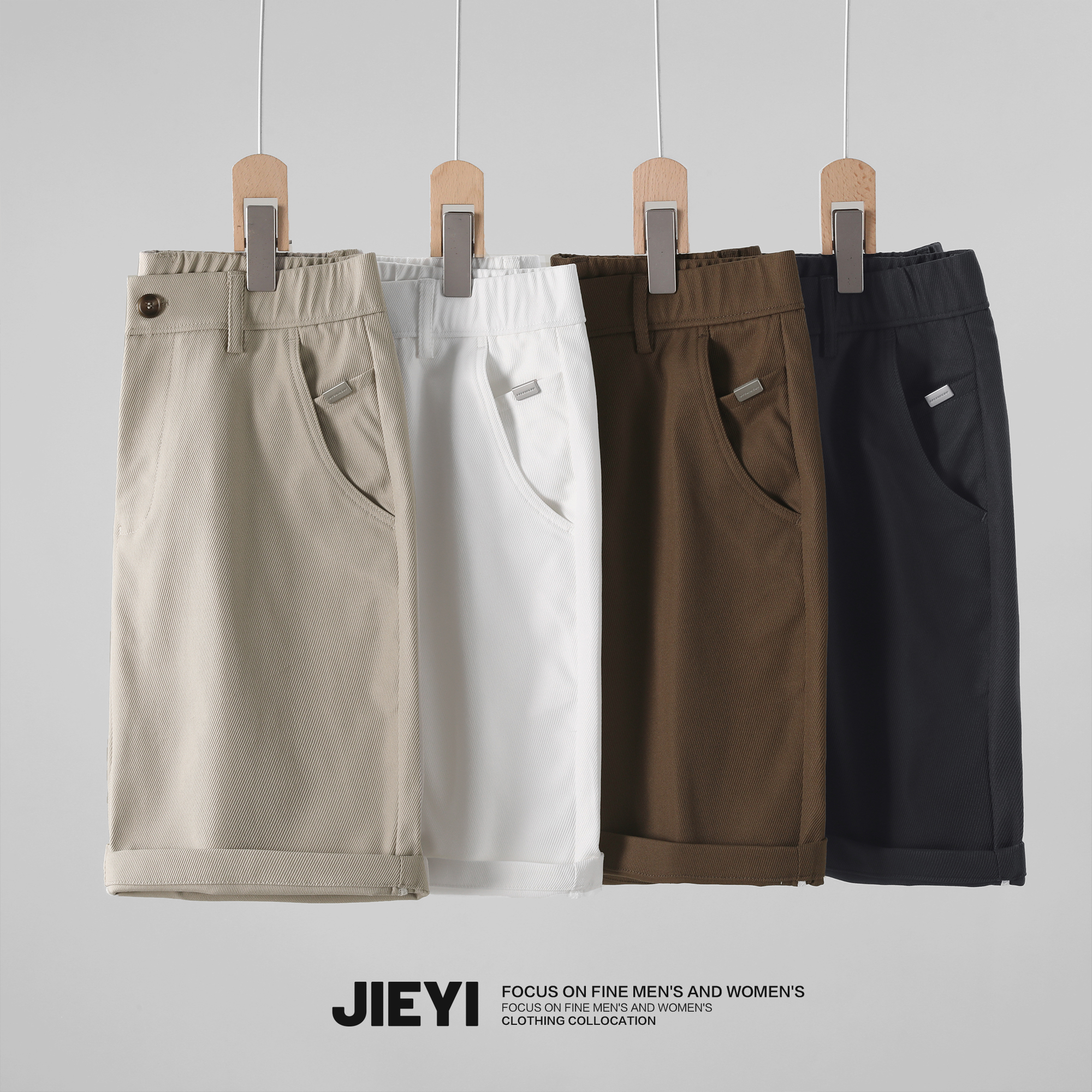 修身 中裤 纯色斜纹肌理男士 复古简约韩风透气百搭夏季 子 短裤 JIEYI