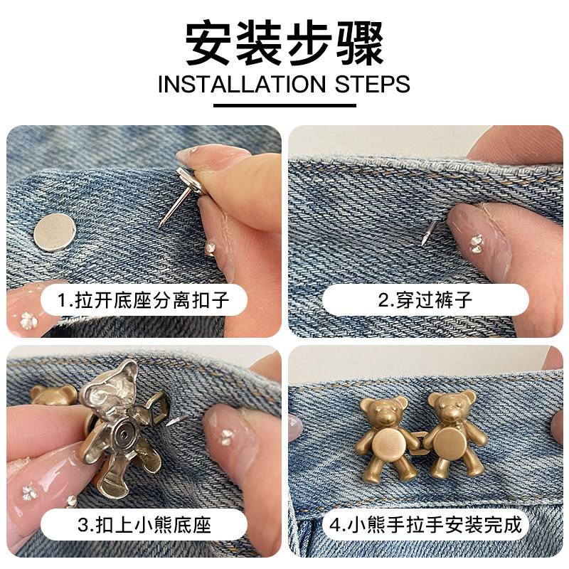腰收紧调节扣裤 头腰围大了改小神器裤 子不硌肉纽扣 收腰扣裤 牛仔裤