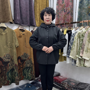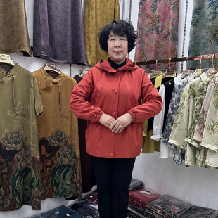 大码 特大体中老年妈妈春秋休闲连帽风衣外套女奶奶装 200斤夹克衫