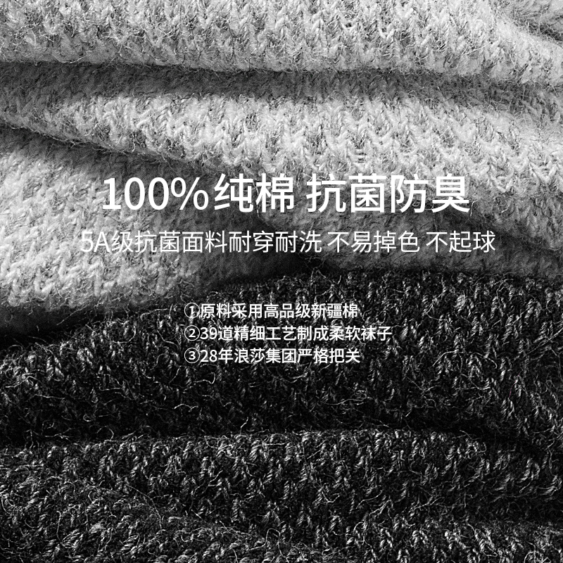 回力袜子男款 加厚长筒袜 中筒袜纯色新疆棉春秋抗菌防臭保暖冬季