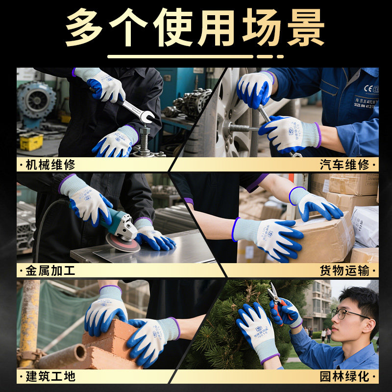 进口浸胶丁晴手套劳保工作耐磨丁腈橡胶防水防滑加厚乳胶工地干活