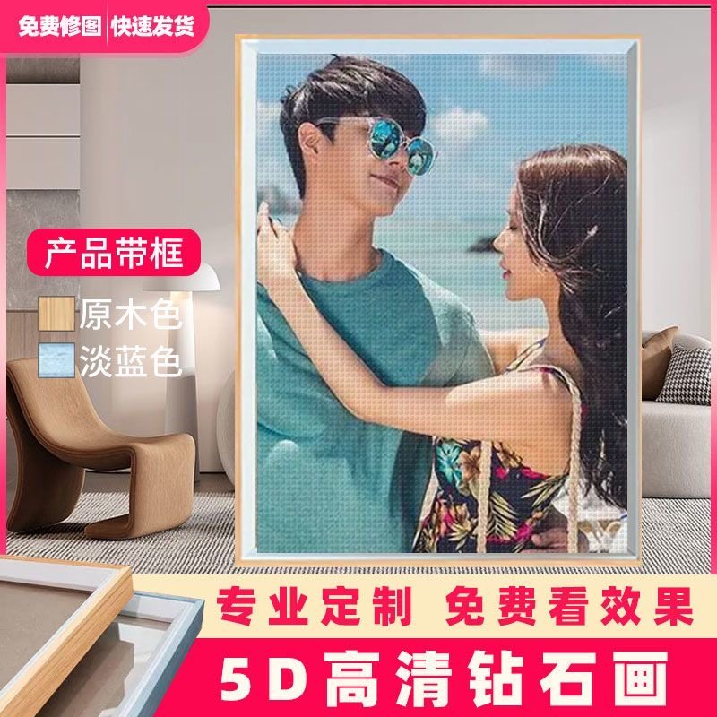 2025新款 钻石画定制真人照片人像手工diy点钻贴画带框十字绣礼物