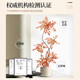 仿真绿植高端轻奢红色南天竹假植物装 饰室内客厅仿生落地摆件盆栽