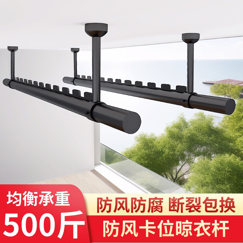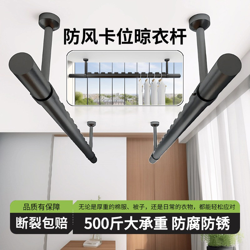 阳台固定式 晾衣杆防风不锈钢晾衣架家用挂衣杆晒衣杆晾衣神器单杆
