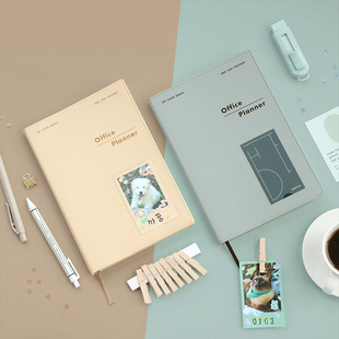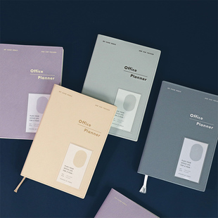 韩国ICONIC工作主题周计划手帐A5日程规划管理笔记本PVC仿皮收纳功能封皮时尚 时间轴自填日期 简约商务竖式