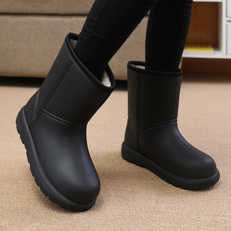加绒雪地靴女士加棉雨鞋 棉靴 保暖防水防滑加厚底外穿中筒EVA冬季
