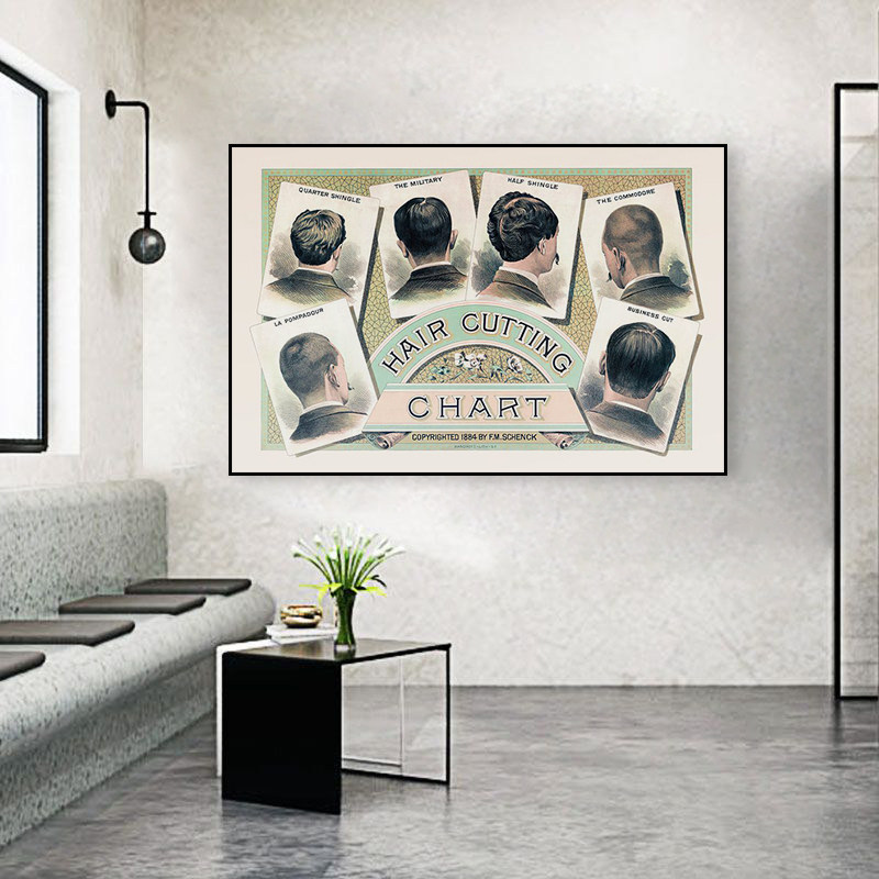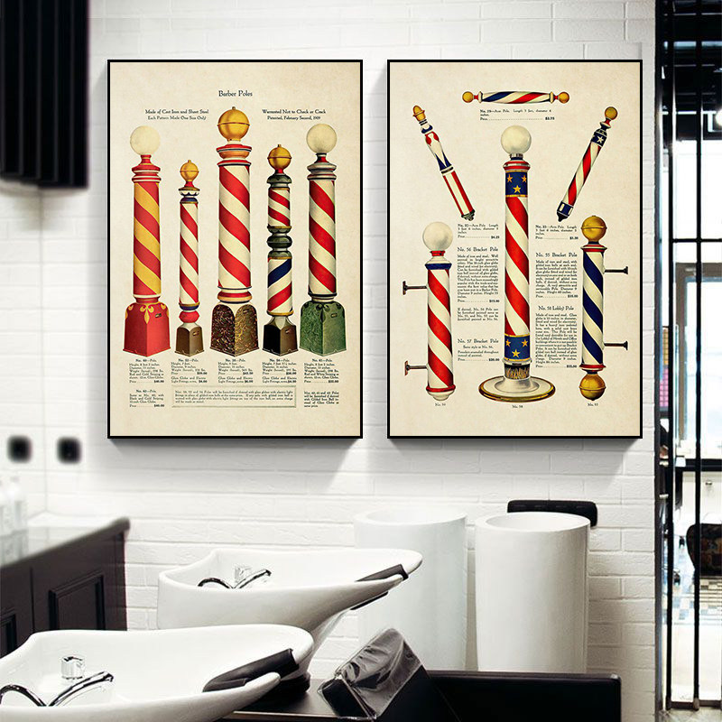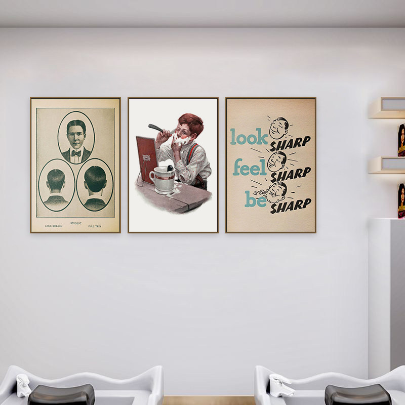 美式 饰画美发店沙发背景墙挂画发廊剃须刀海报壁画 复古理发店装