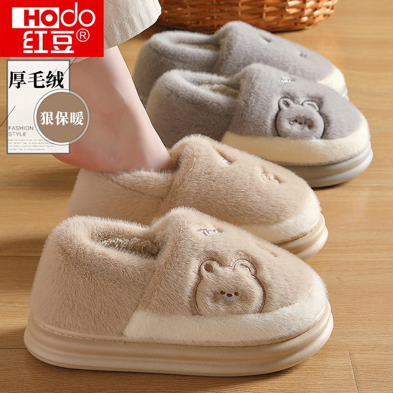室内居家厚底保暖毛绒棉鞋 踩屎感棉拖鞋 包跟外穿25新款 冬季 男 女款
