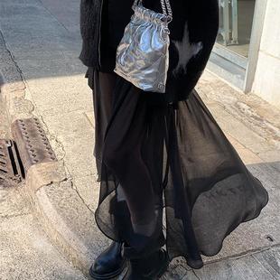 44AaSi 重工设计感不规则多褶网纱拼接半身裙女韩系 不买睡不着