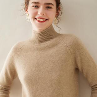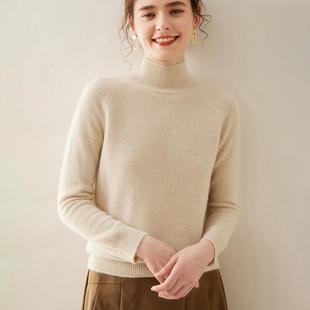 半高领羊绒衫 打底衫 女加厚宽松长袖 针织衫 套头毛衣插肩袖 秋冬新款