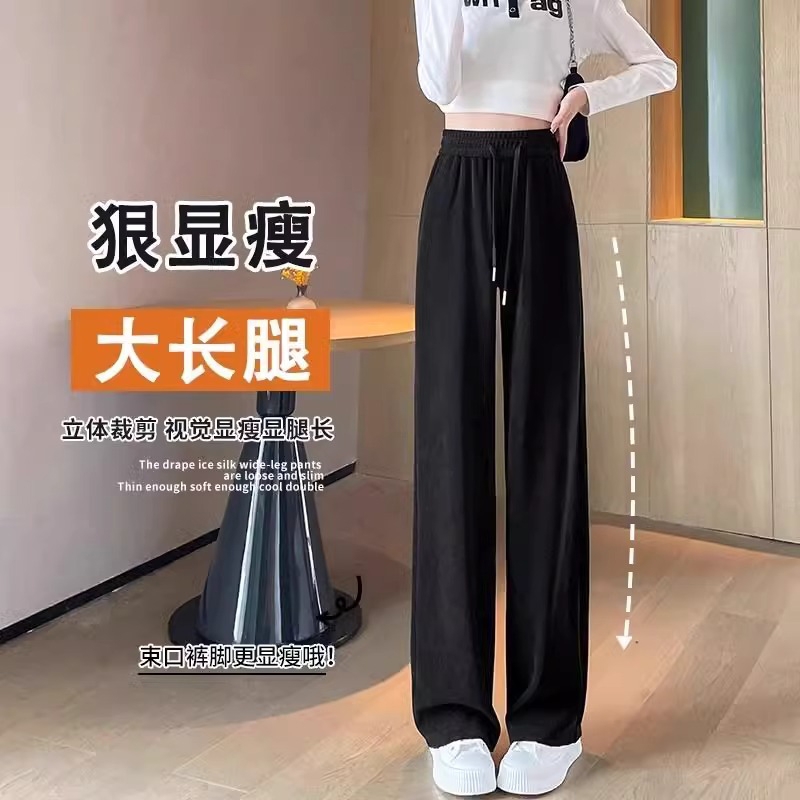 直筒裤 窄版 秋冬加绒黑色宽松垂感休闲大码 女小个子2025新款 阔腿裤
