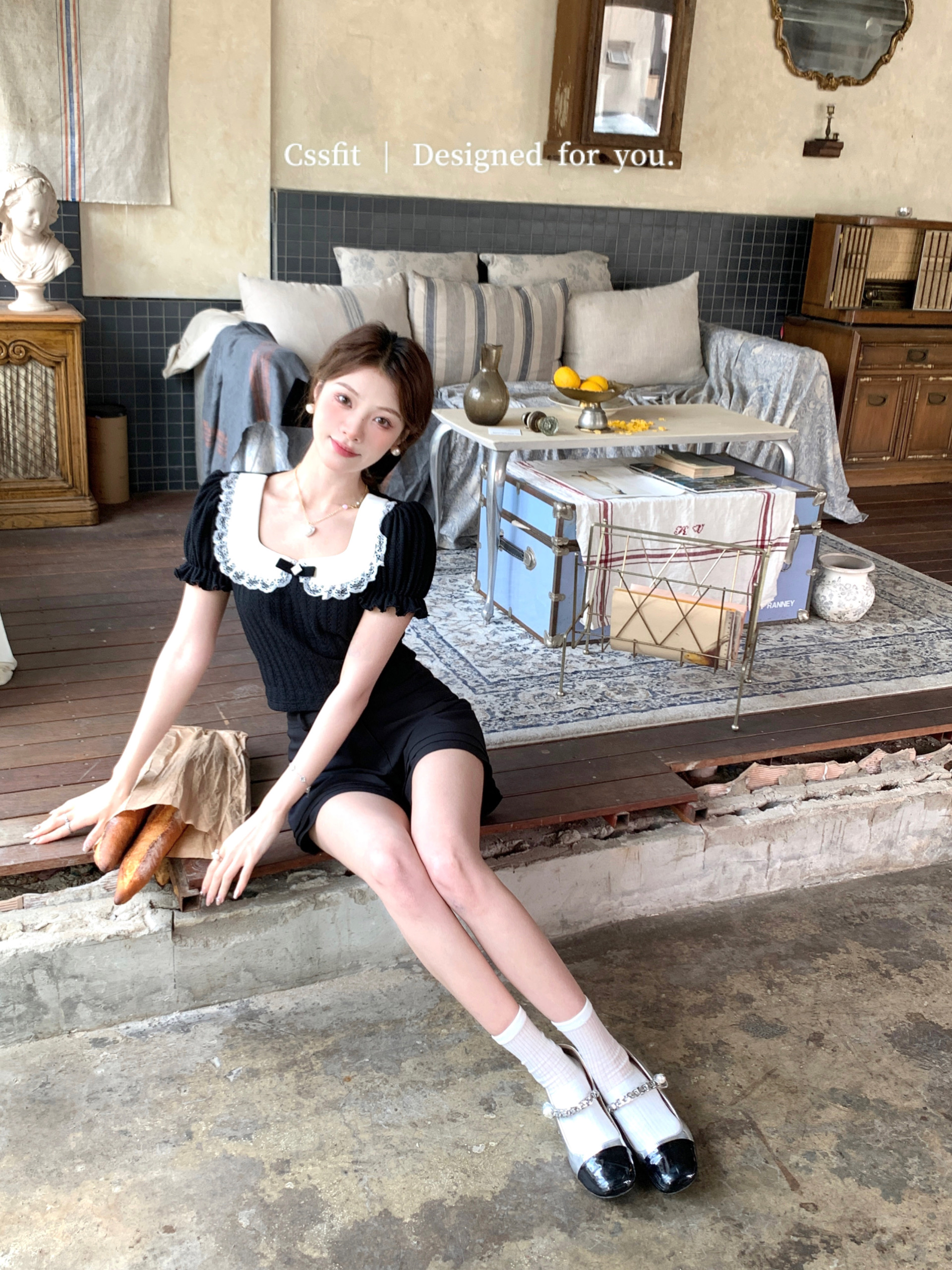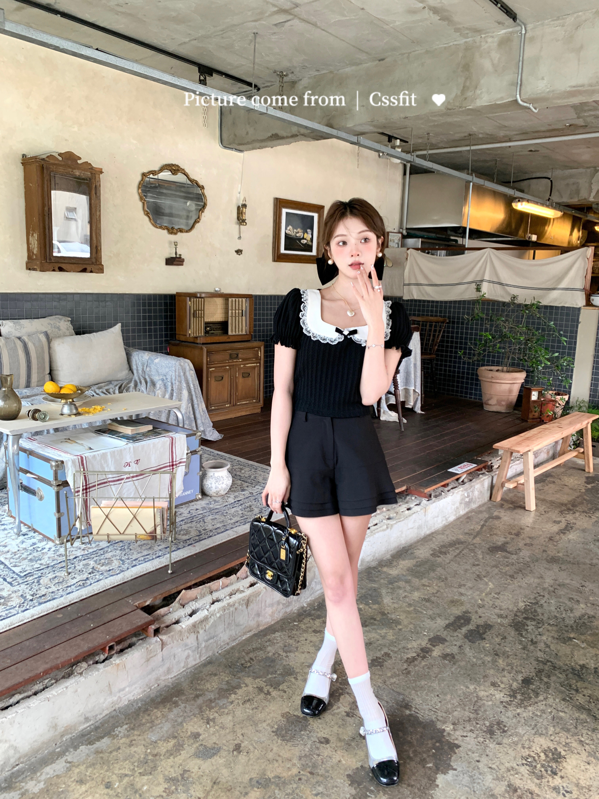自线定制~珍妮日记 手作钻扣蝴蝶结花边小翻领上衣 迟伞伞