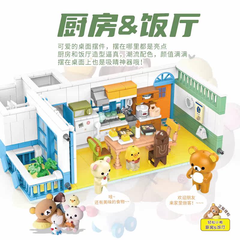 积木玩具模型 授权轻松小熊卧室饭厅场景摆件拼装 积乎890301 2正版