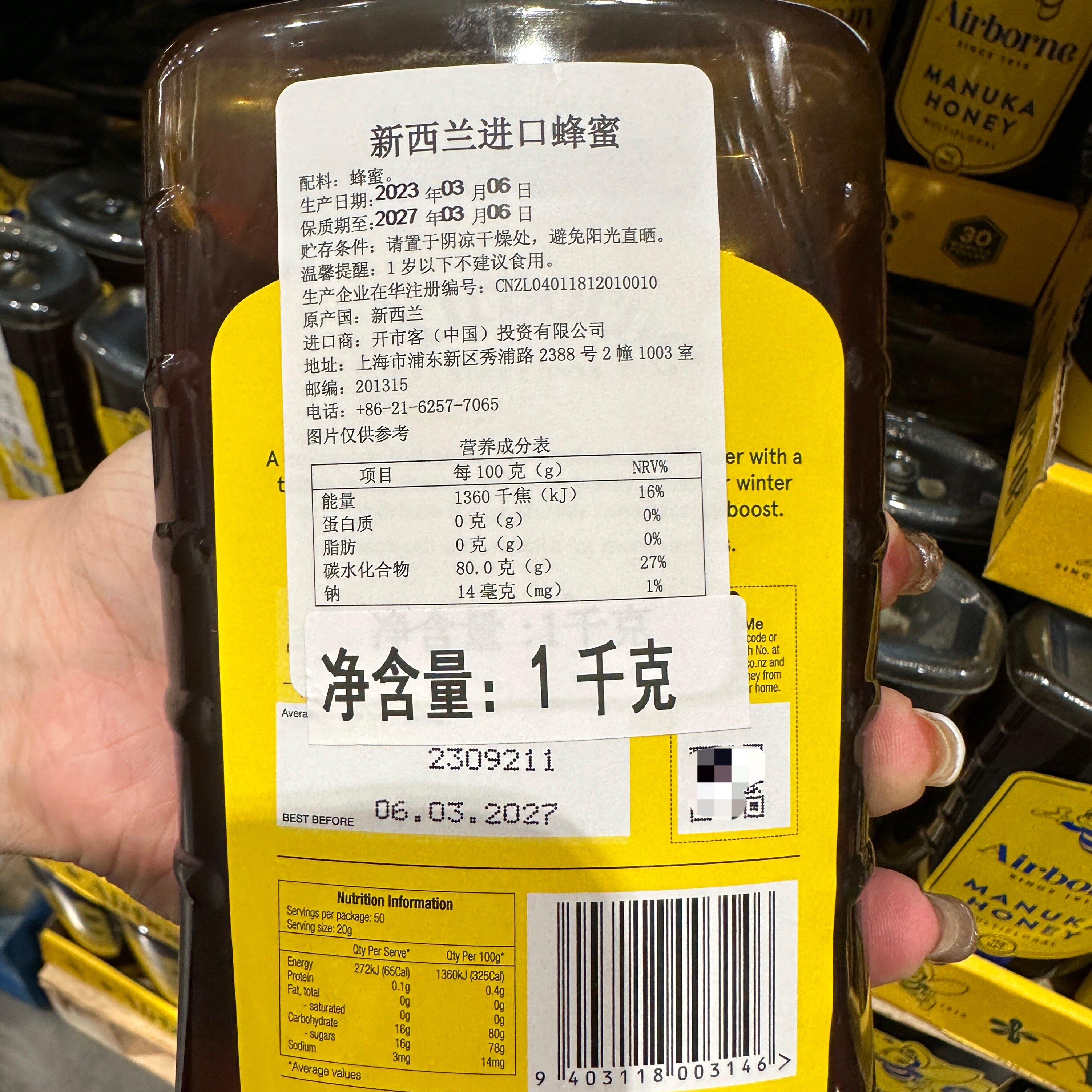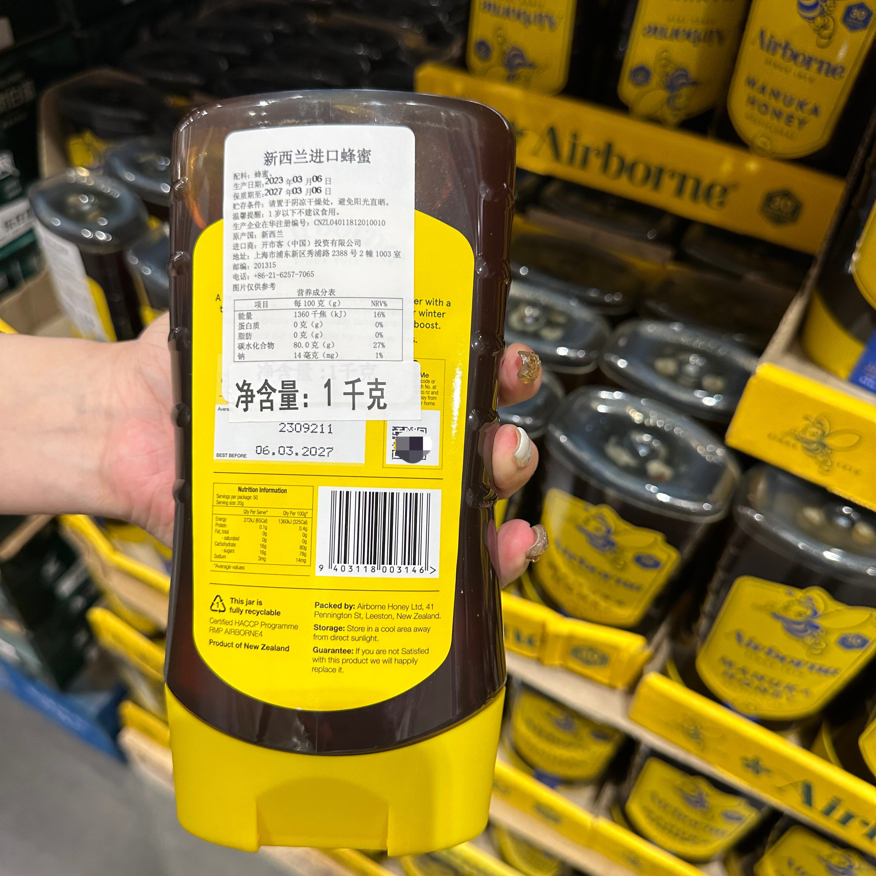 costco代购 Airborne新西兰进口蜂蜜1kg天然纯正麦卢卡蜂蜜挤压瓶