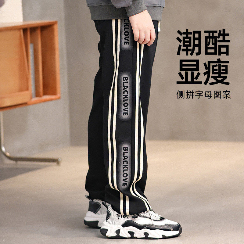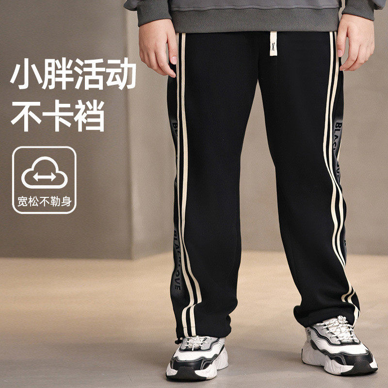 子胖童春装 青少年中大童加肥加大长裤 新款 潮卫裤 条纹运动裤 男童裤