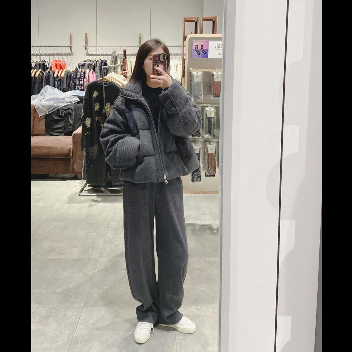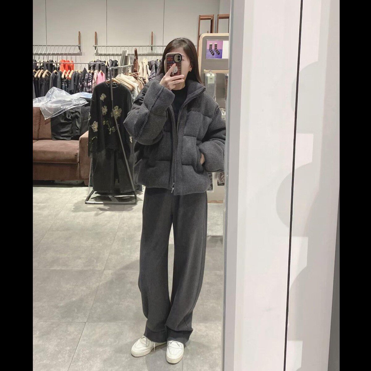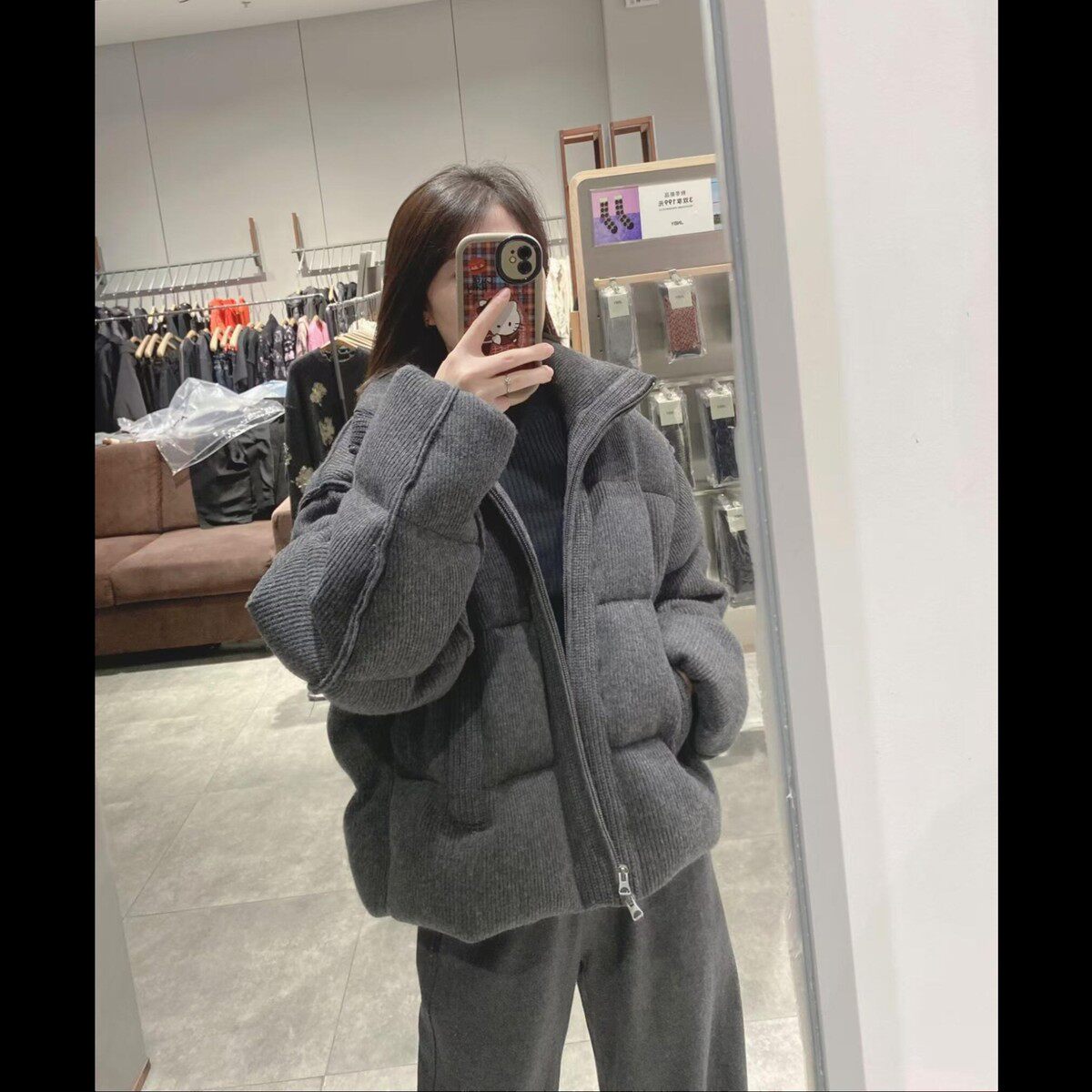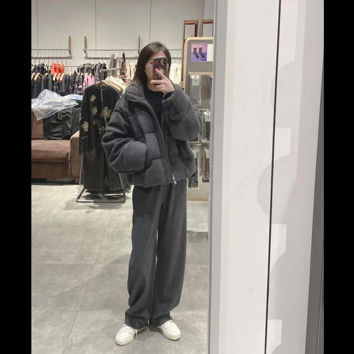 新款 棉服外套女冬季 小众高级感百搭面包服上衣 灰色灯芯绒短款 美式