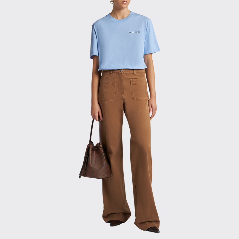 型纯棉华达呢直筒素色高腰阔腿裤 女士宽松版 25新款 ETRO艾绰