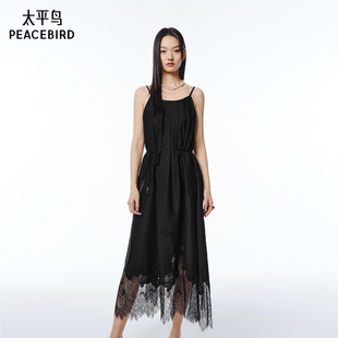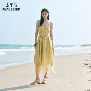 度假慵懒风 太平鸟蕾丝提花吊带长连衣裙女2025夏新款 浮雕山茶
