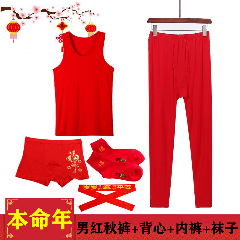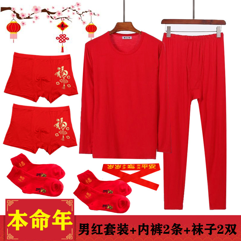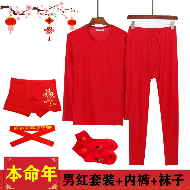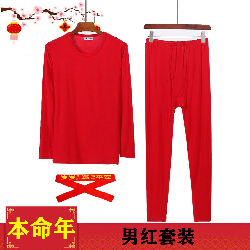 本命年红内衣男装 鸿运打底衫 大红色秋衣秋裤 红套装 莫代尔薄款 男士