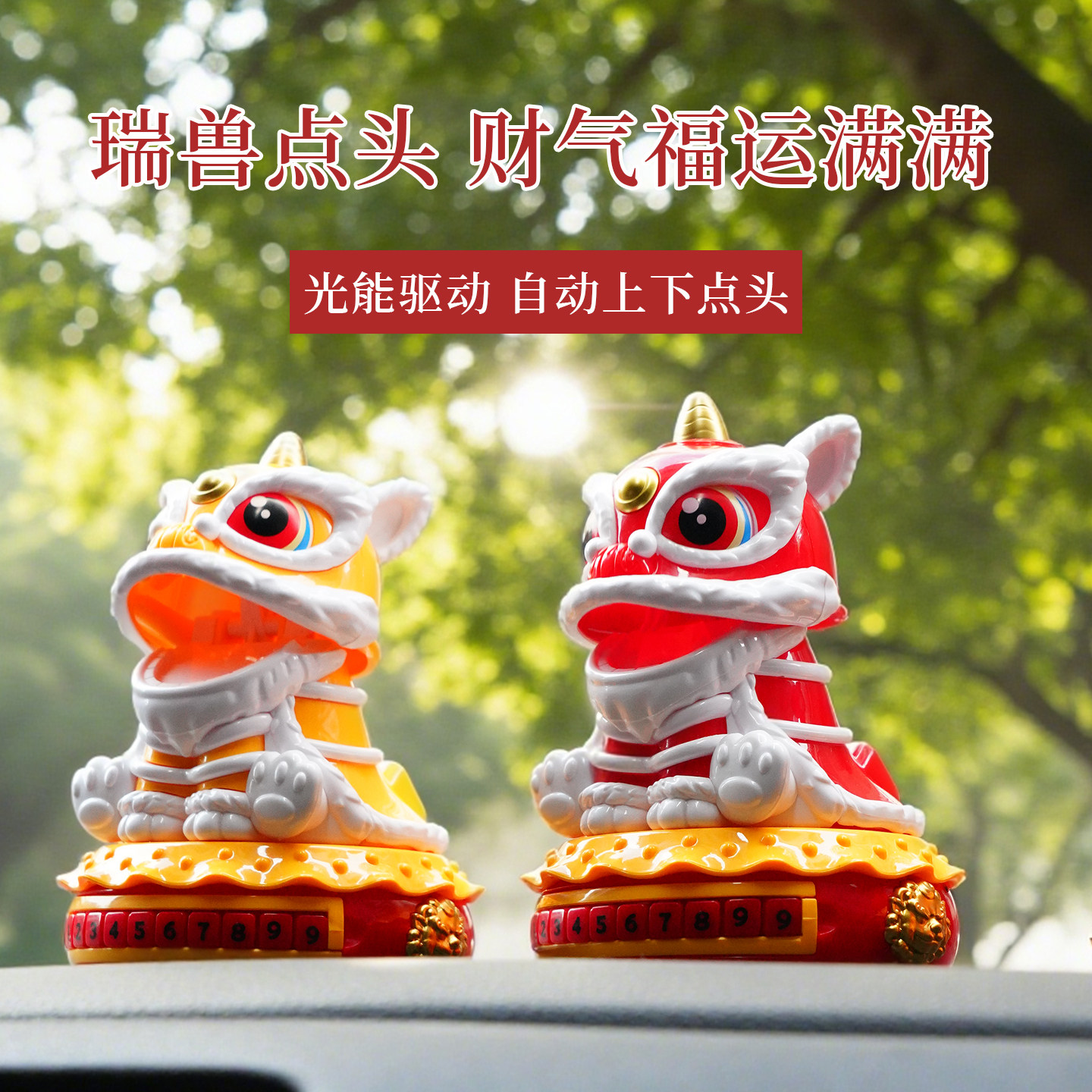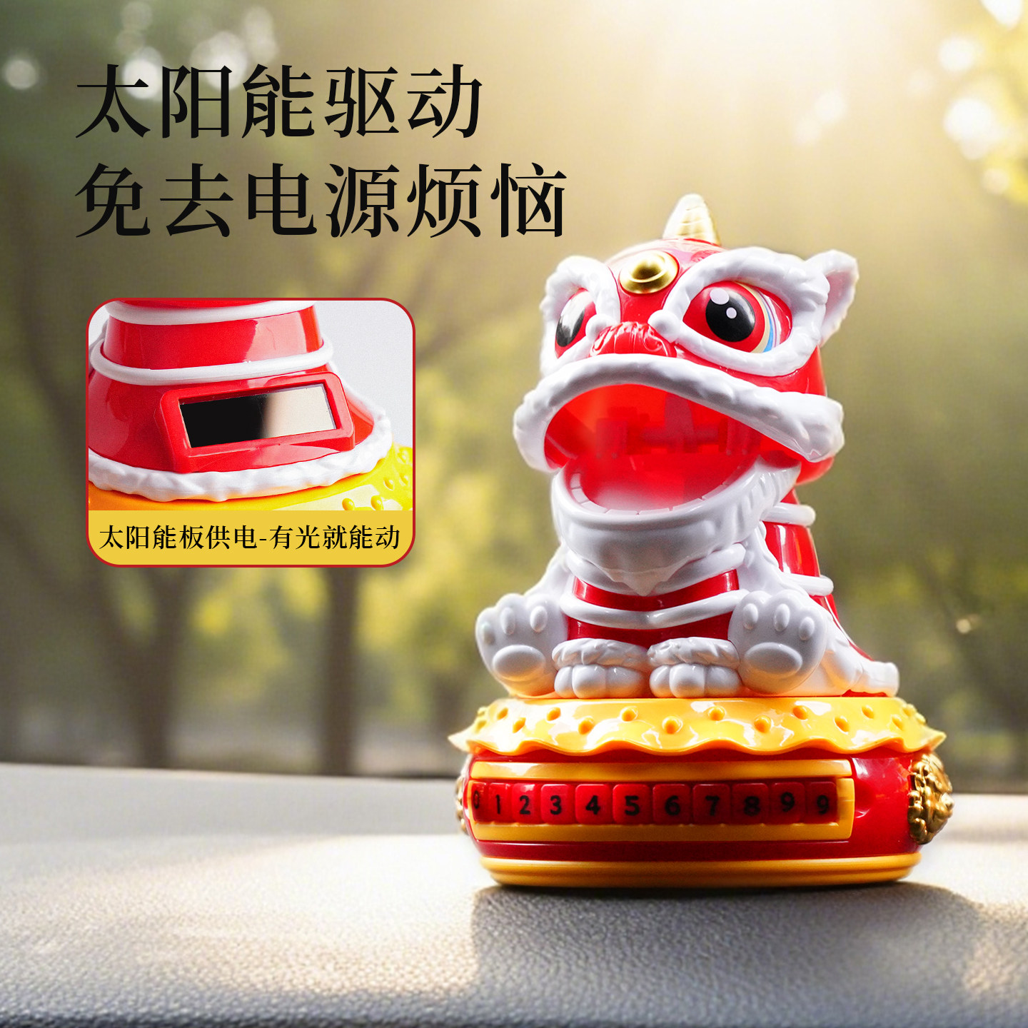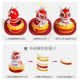 太阳能醒狮临时停车牌挪车汽车摇头摆件2026新款 饰品 车载中控台装