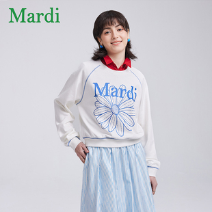 T宽松上衣 休闲长袖 MARDI小雏菊女印花圆领卫衣秋冬百搭新款 女装
