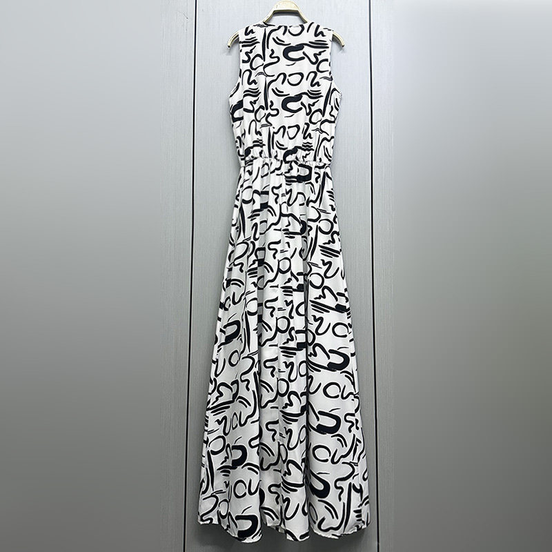 气质印花显瘦A字裙休闲连衣裙 女装 外贸原单175高个子新款 无袖