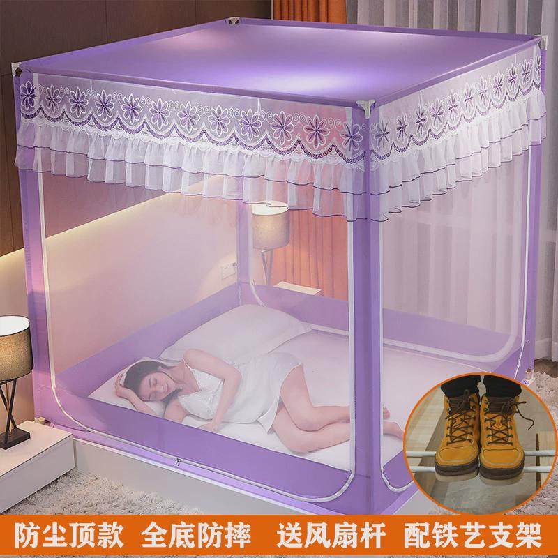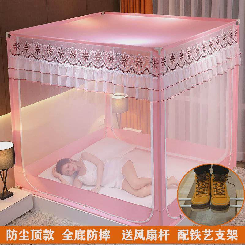 52n公主风宝宝防摔拉链蚊帐1.5米防尘方顶坐床文帐子1.8m2床纹账