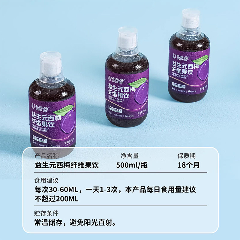 U100益生元 饮料大餐救星浓缩果汁原浆纤维果饮0脂 西梅汁网红夏季