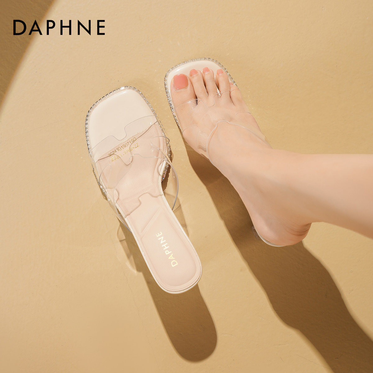 粗跟露趾水晶拖鞋 达芙妮透明高跟凉鞋 2026年新款 外穿凉拖鞋 女夏季