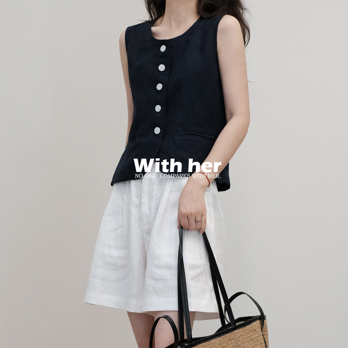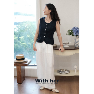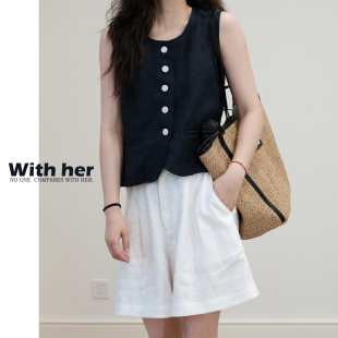 马甲上衣女无袖 亚麻休闲简约西装 背心 复古法式 与她原创小众设计