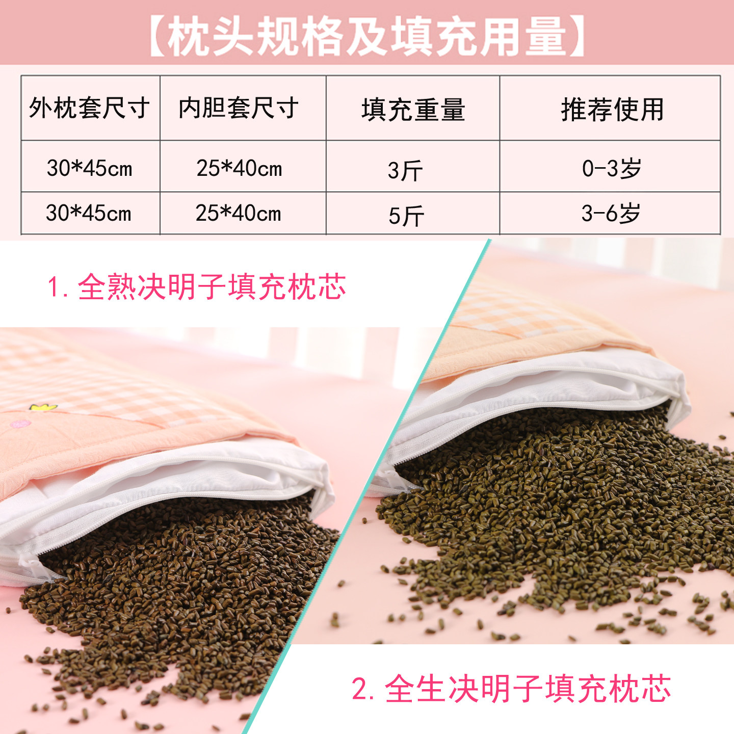 全决明子枕头婴儿新生宝宝0到6个月以上定型专用幼儿园儿童3臾6岁