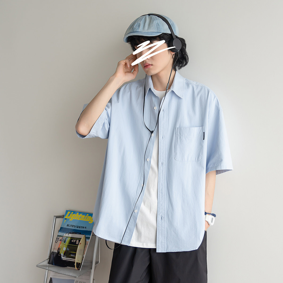 青春时尚 苏打汽水工作室夏季 日系男女款 衬衫 衬衣 纯色休闲百搭短袖