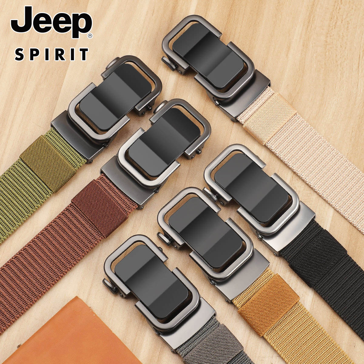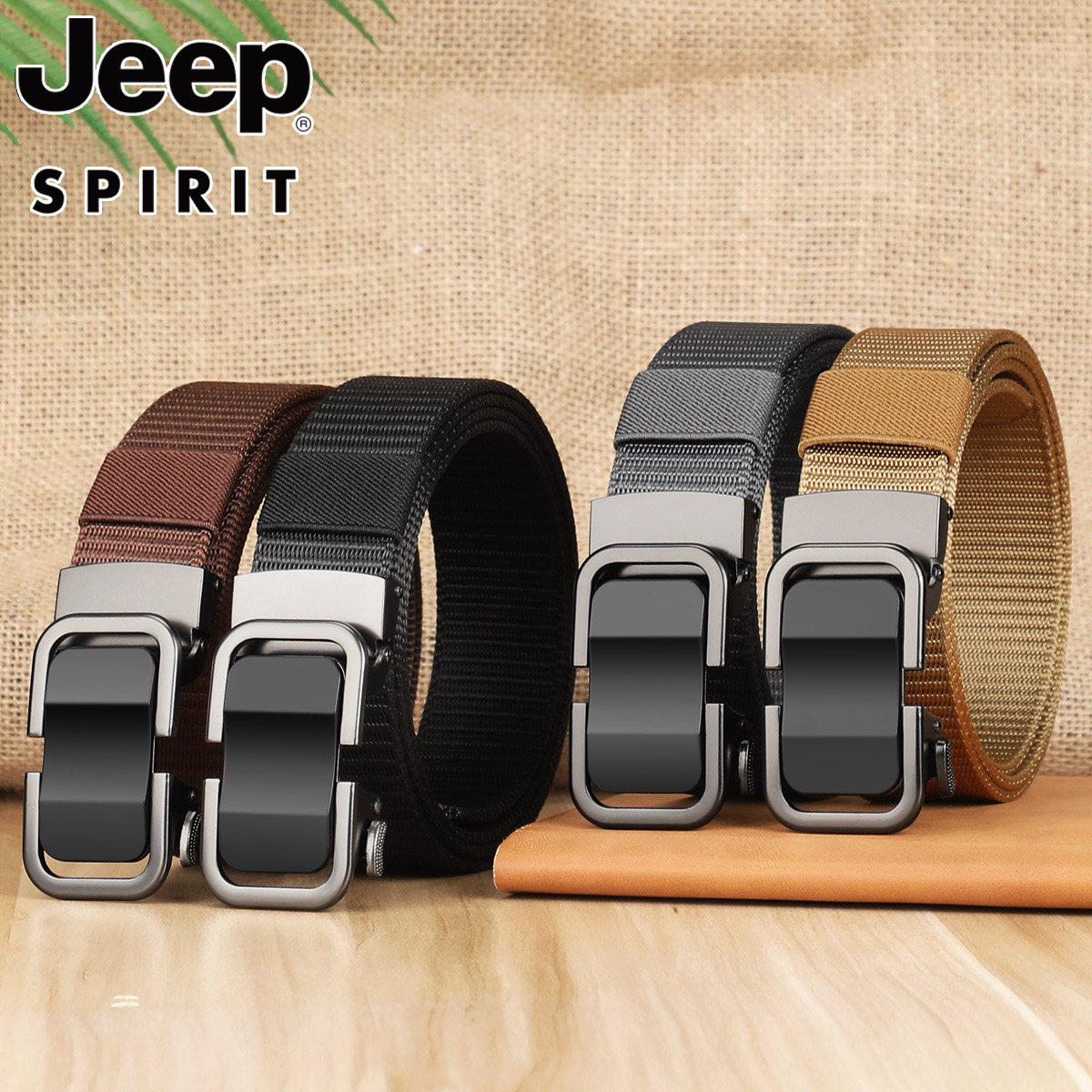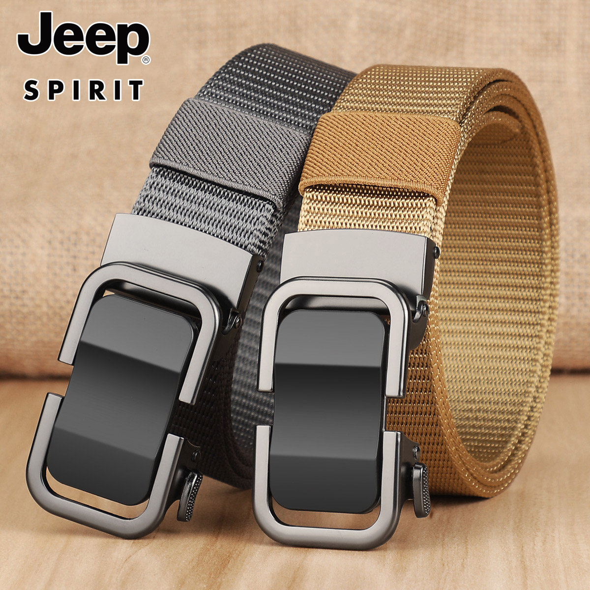 Jeep 牛 spirit青年无牙自动扣皮带尼龙帆布腰带户外休闲商务西裤