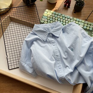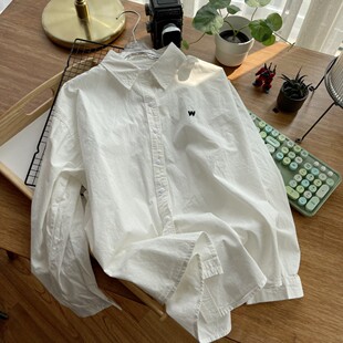 刺绣衬衫 春秋水洗纯棉麻上衣外套粉色高级韩系流行叠穿内搭 女长袖