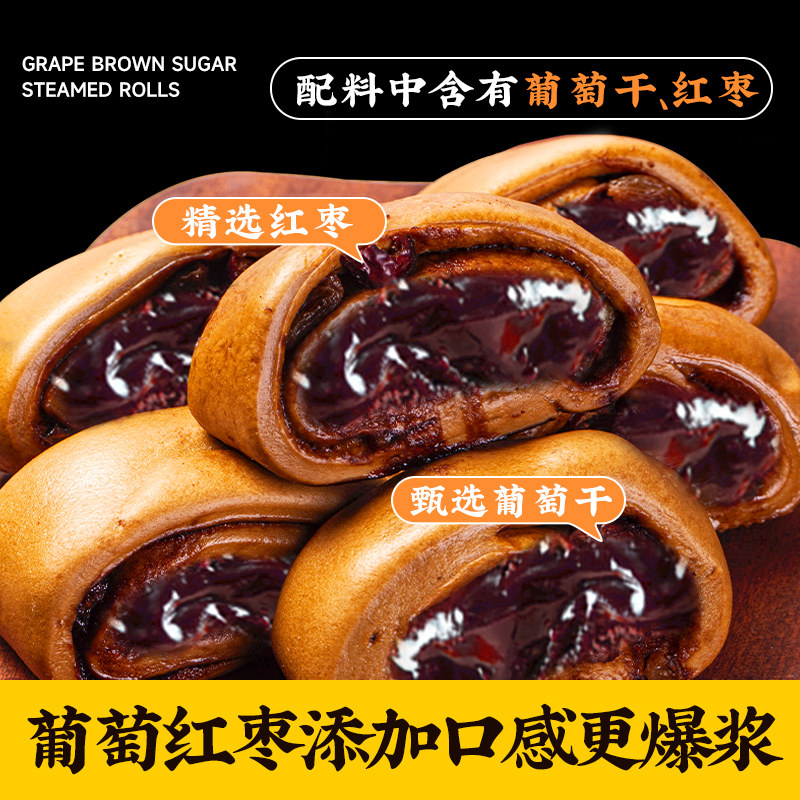 山东0脂肪手工红糖馒头即食葡萄爆浆手撕千层红枣馒头不加油早餐