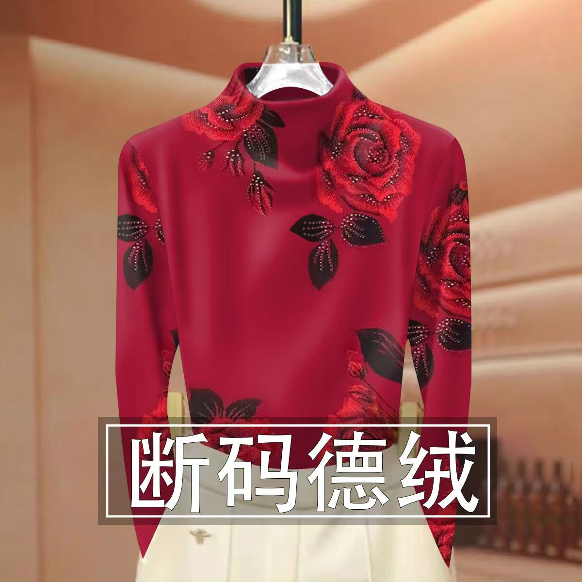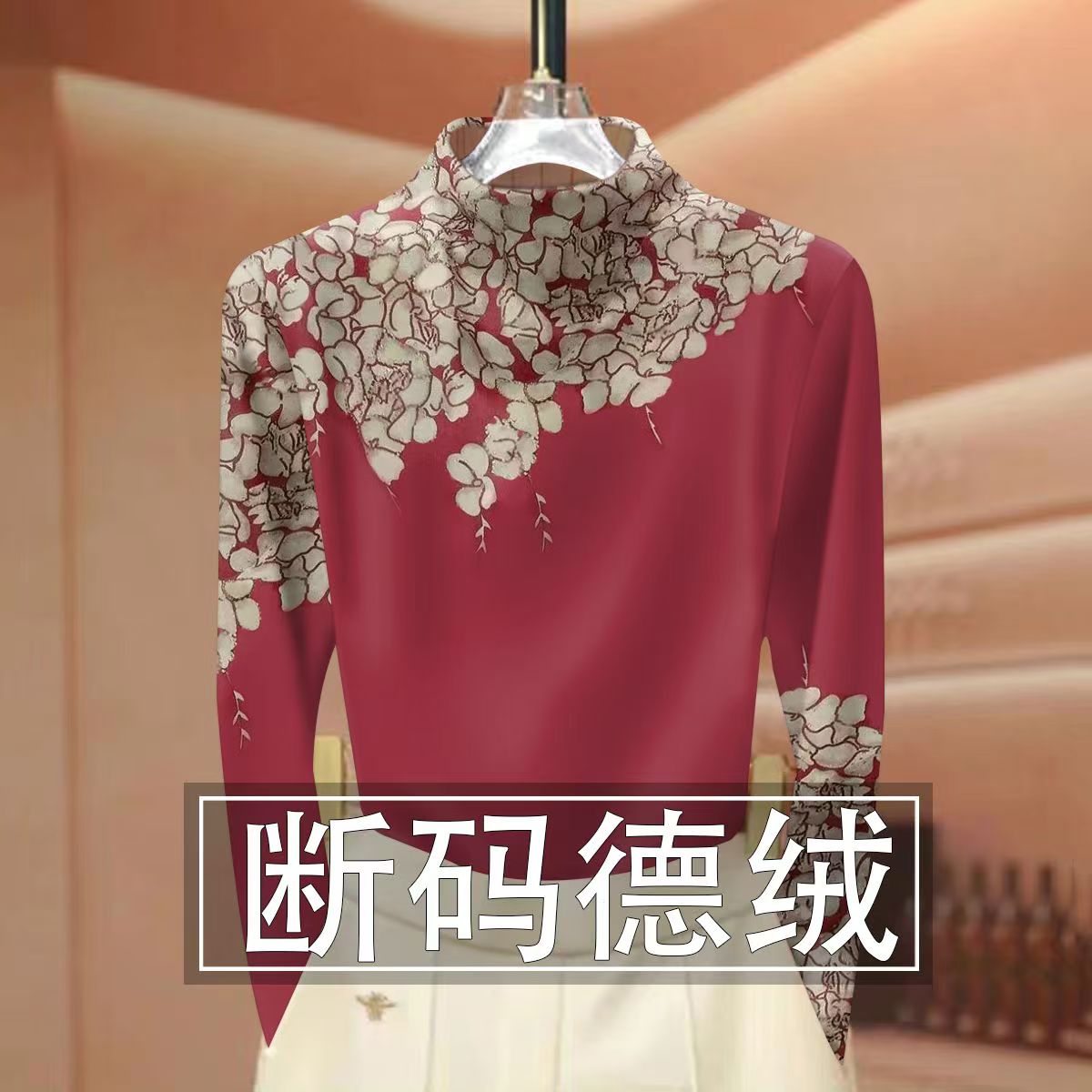 半高领套头打底衫 宽松大码 女秋冬新气质妈妈装 德绒保暖印花T恤衫