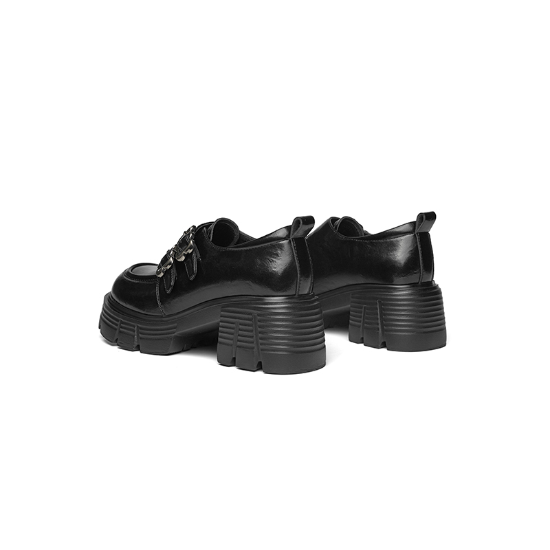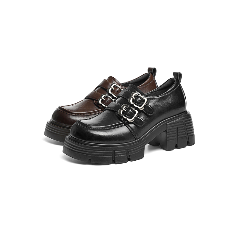 学院黑色英伦小皮鞋 红蜻蜓厚底乐福鞋 粗跟增高单鞋 女鞋 女2025新款