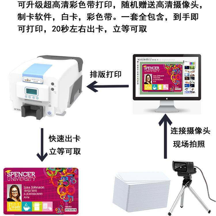 DC800证卡打印机工作证厂牌门禁卡健康证PVC标牌IC卡制卡机双面彩
