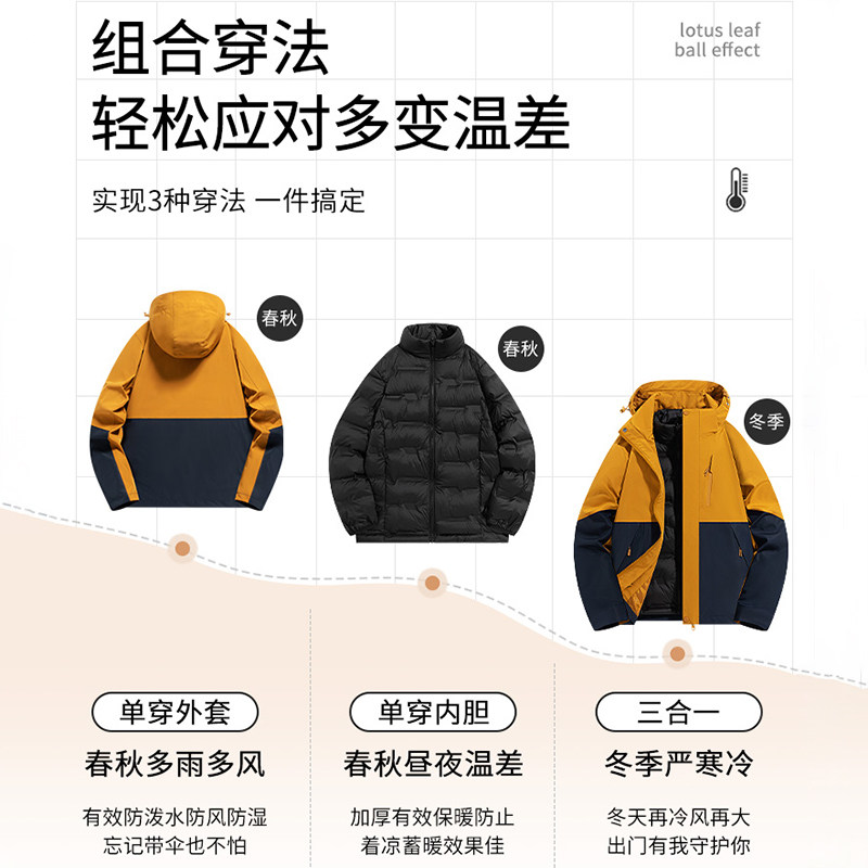 防水硬壳男蓝色外套冬 骆驼雨神冲锋衣女羽绒服三合一新款 羽绒版