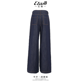 艾格高个子阔腿牛仔裤 子 女2026春夏天丝垂感高腰加长拖地直筒裤