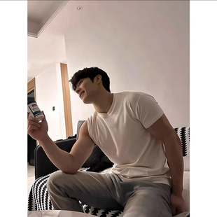 美式 Light 夏季 口短袖 小领口重磅t恤垫肩显肌肉健身 Weight男收袖