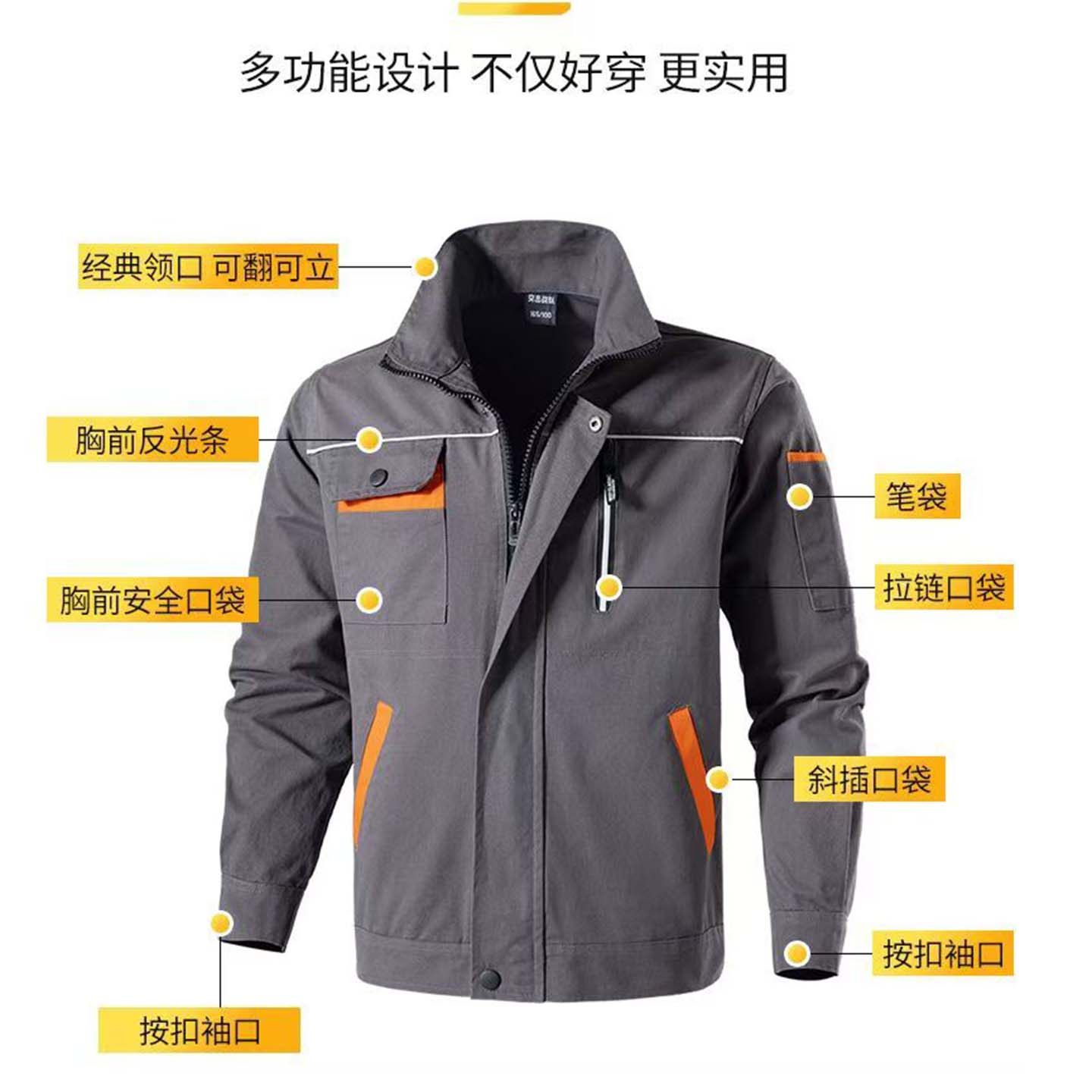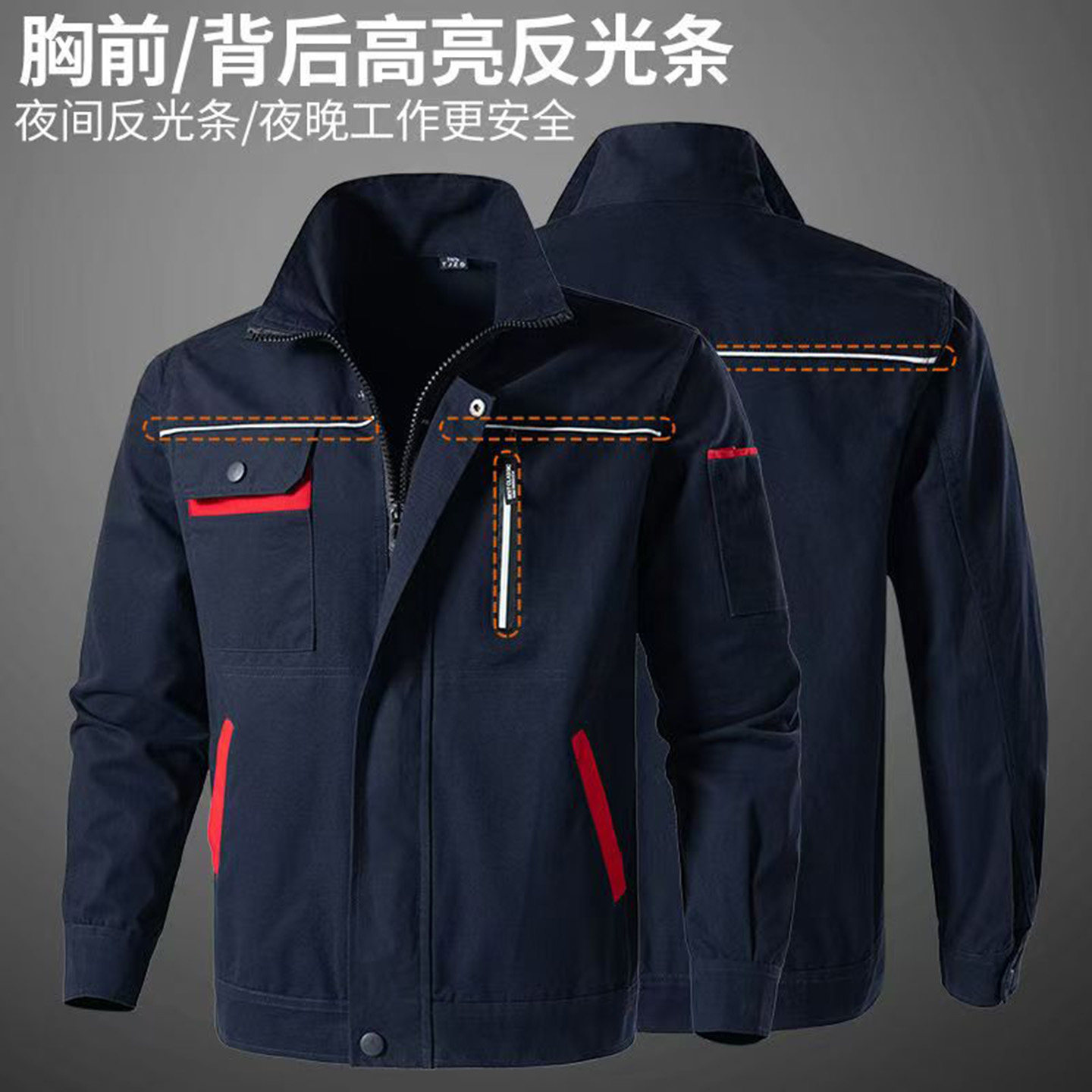 加厚防烫耐磨阻燃电焊工地反光工装 纯棉工作服套装 男春秋劳保服装
