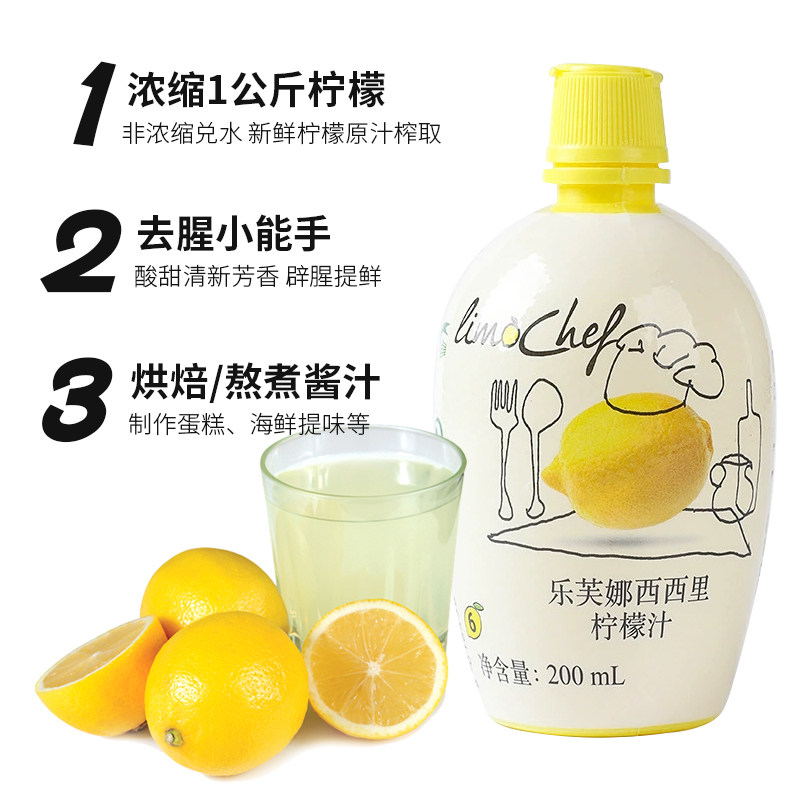 乐芙娜西西里柠檬汁200ml浓缩汁烘焙蛋糕冲饮奶茶店用意大利进口
