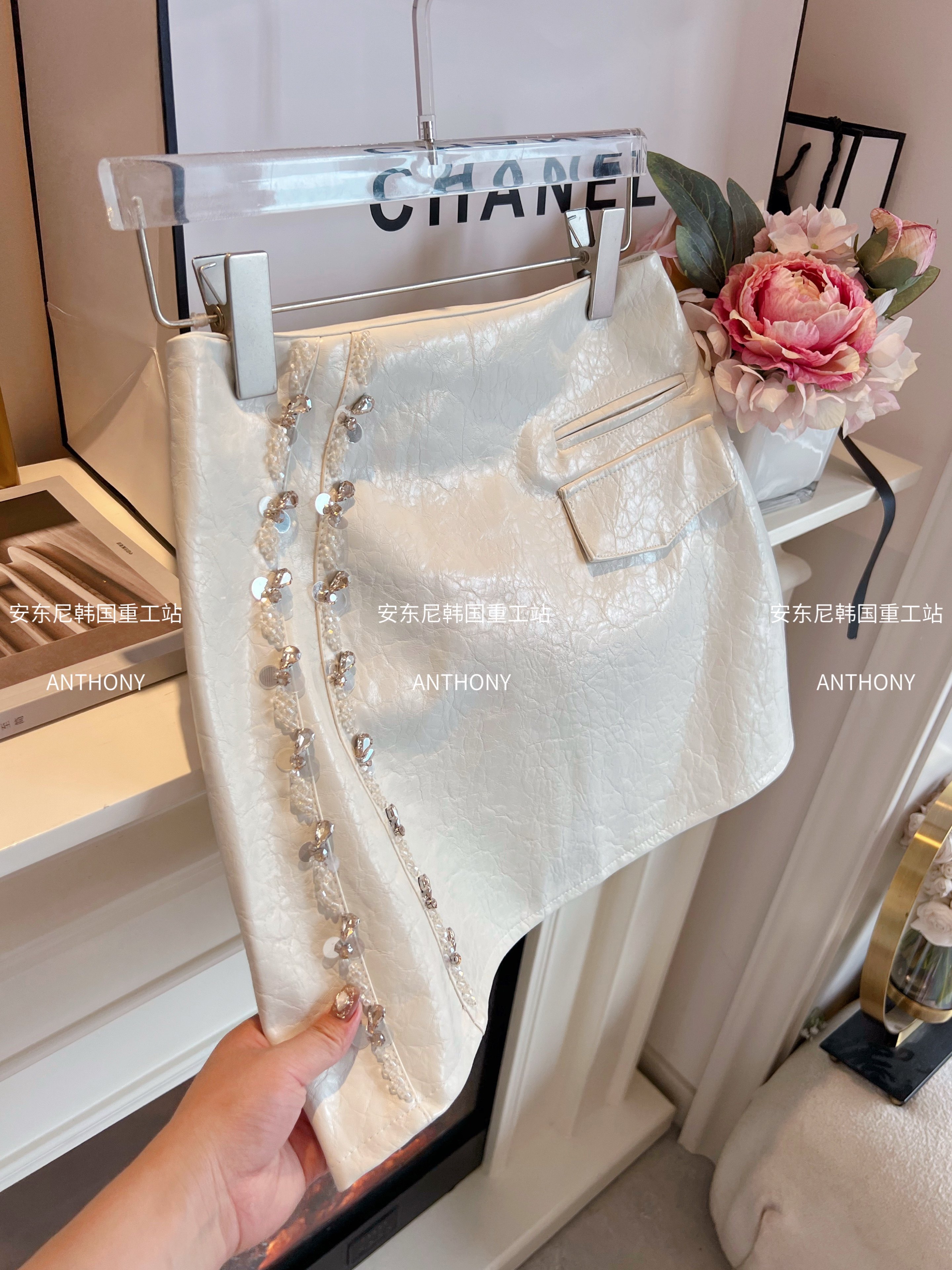 pu皮半身裙女装 设计感重工镶钻亮片高腰显瘦名媛风气质短裙a字裙
