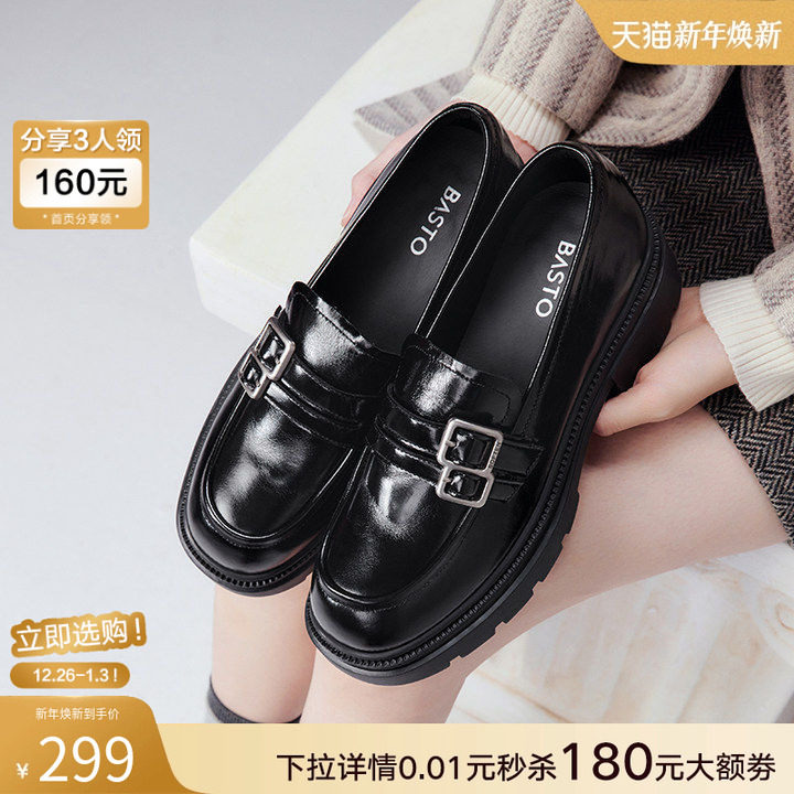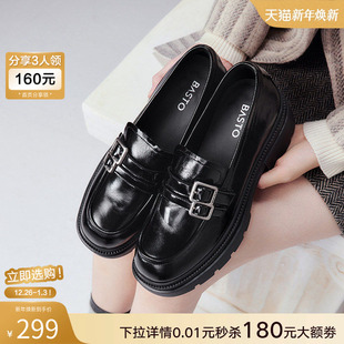 女厚底单鞋 英伦乐福鞋 百思图2025春商场新款 TFW93AA5 暗夜鸢尾