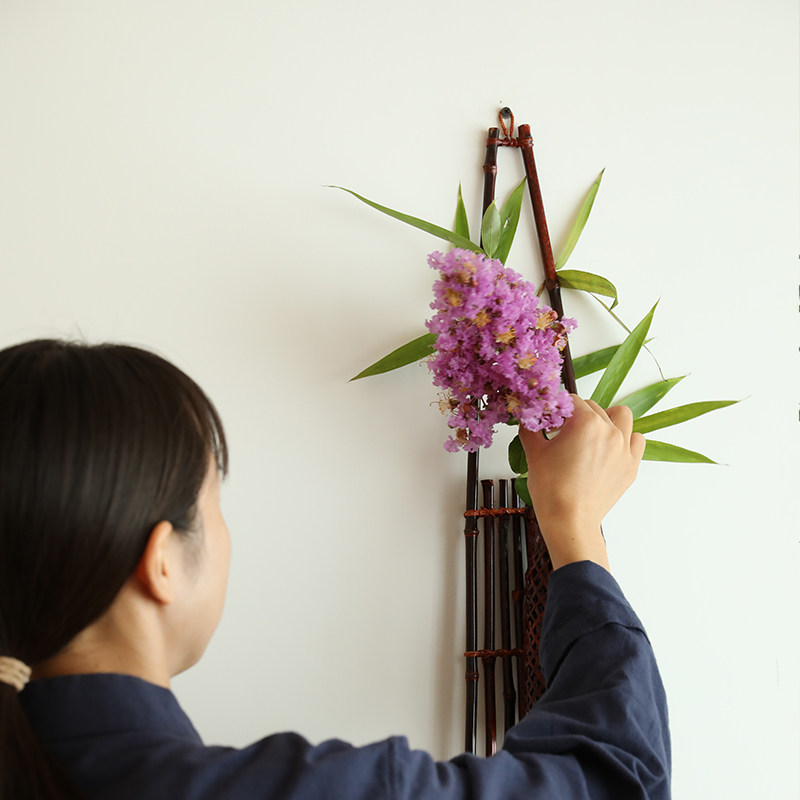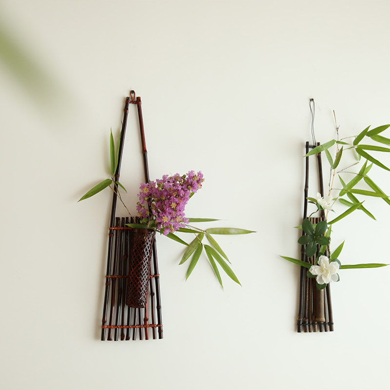 日式 饰品挂件 竹制插花花器小型壁挂简约竹子禅意玄关背景墙面装