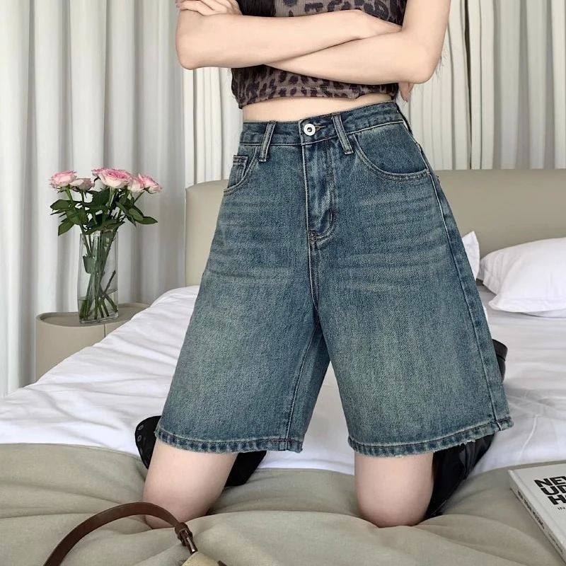 leg straight five quarter Cowboy pants牛仔宽松直筒中裤 loose
